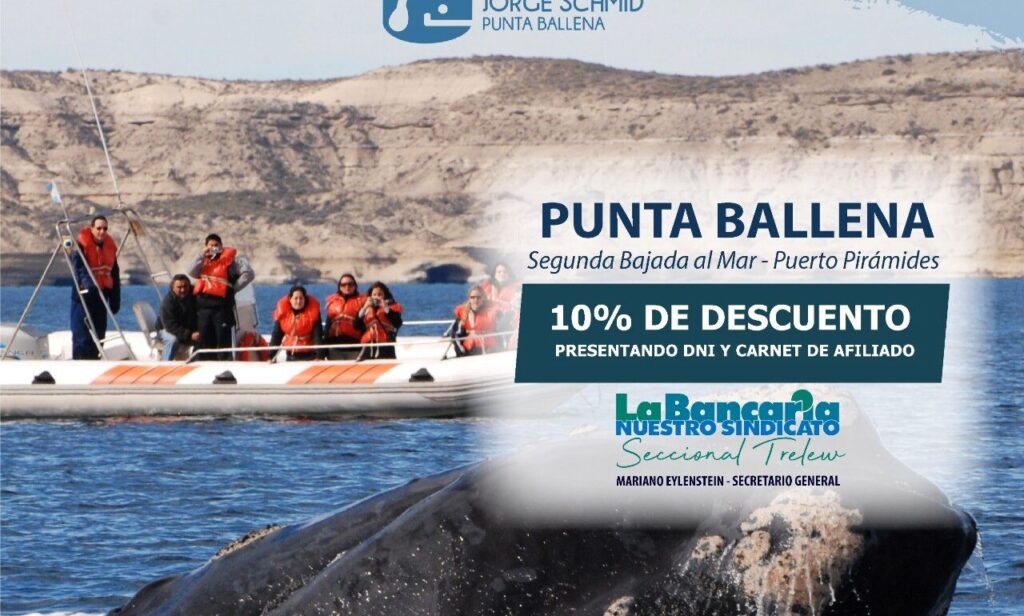 Punta Ballena en Puerto Madryn: 10% de descuento para afiliados a La Bancaria Viví una experiencia única en contacto con la naturaleza junto a Punta Ballena, una de las excursiones…