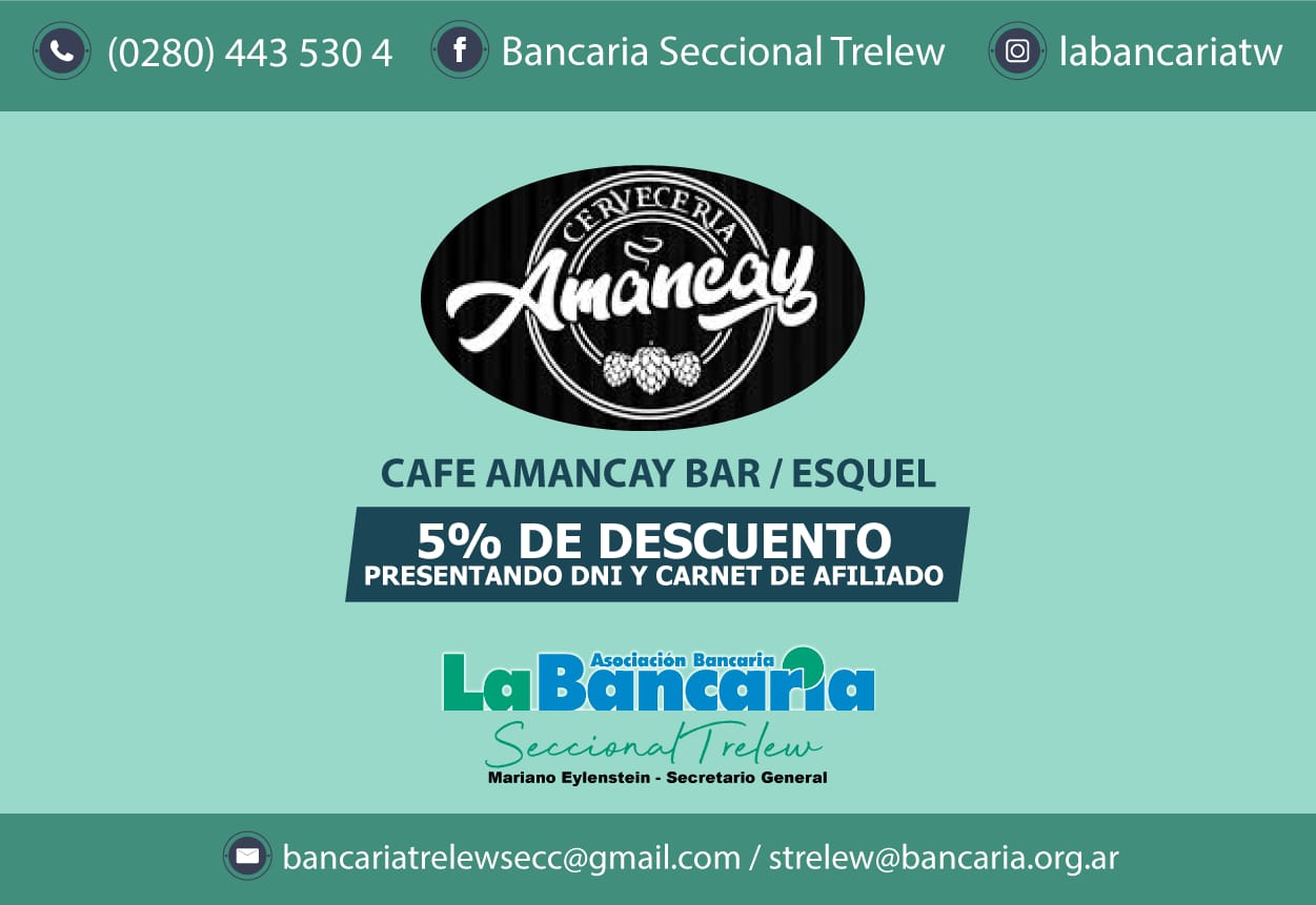 Café Amancay Bar en Esquel – 5% de descuento para afiliados a La Bancaria
