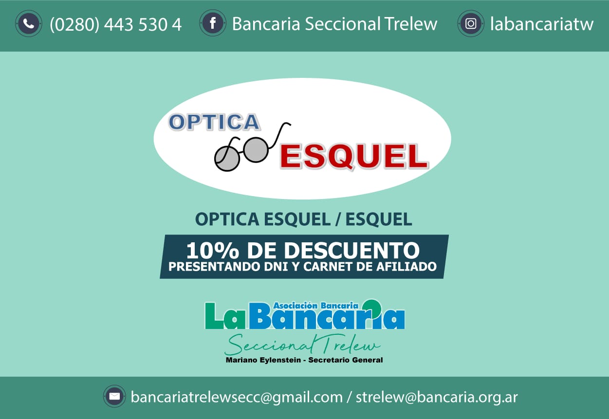 Óptica Esquel – 10% de descuento para afiliados a La Bancaria
