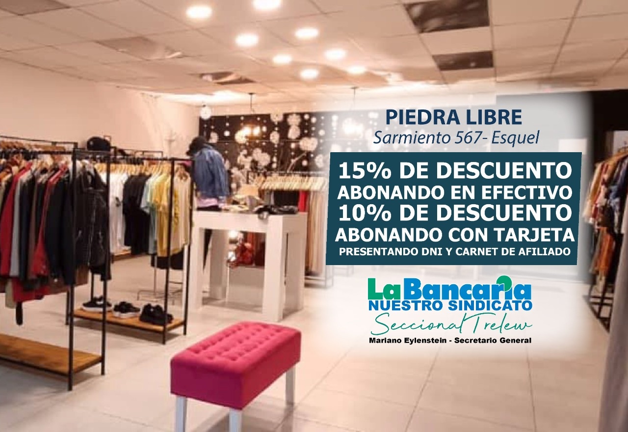 Piedra Libre, ubicada en Rivadavia 1020, Esquel, es una tienda de ropa para mujeres que trabaja con las mejores marcas como TRAMPS, RIMMEL, TRY ME y CUESTA AZUL.