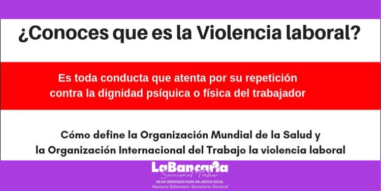 La violencia laboral es una forma de abuso de poder que tiene como finalidad someter o excluir a lxs trabajadorxs de su lugar en el espacio laboral. Esta situación que se presenta es recurrente y sostenida en el tiempo, que inicialmente puede no dejar señales externas, marcas visibles, pero que actúa de manera silenciosa deteriorando a Ixs trabajadorxs en forma psicológica, moral y también en algunos casos económica, produciendo un alto impacto en su salud.