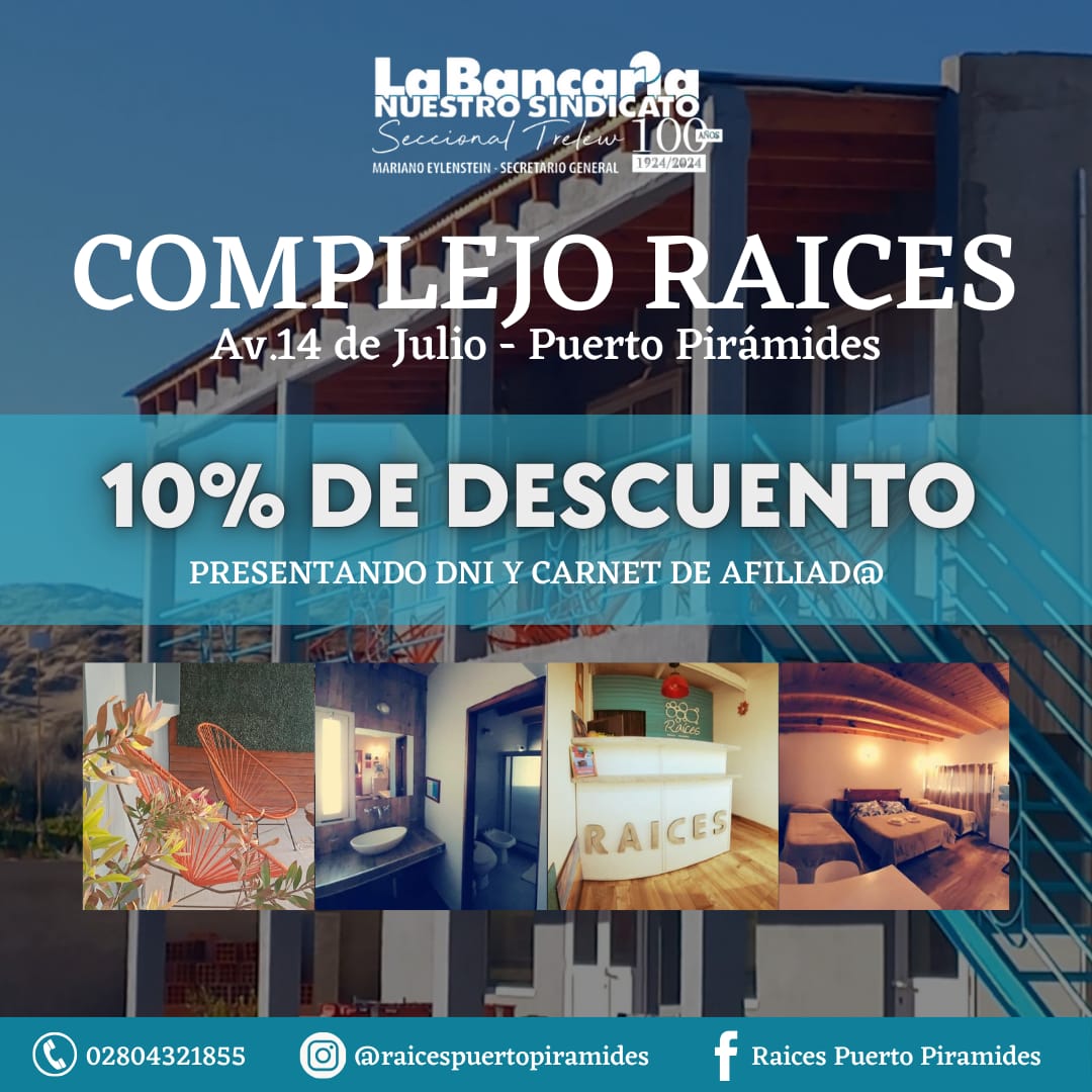Viví la experiencia única de Puerto Pirámides en Complejo Raicres con un 10% de descuento para afiliados a La Bancaria