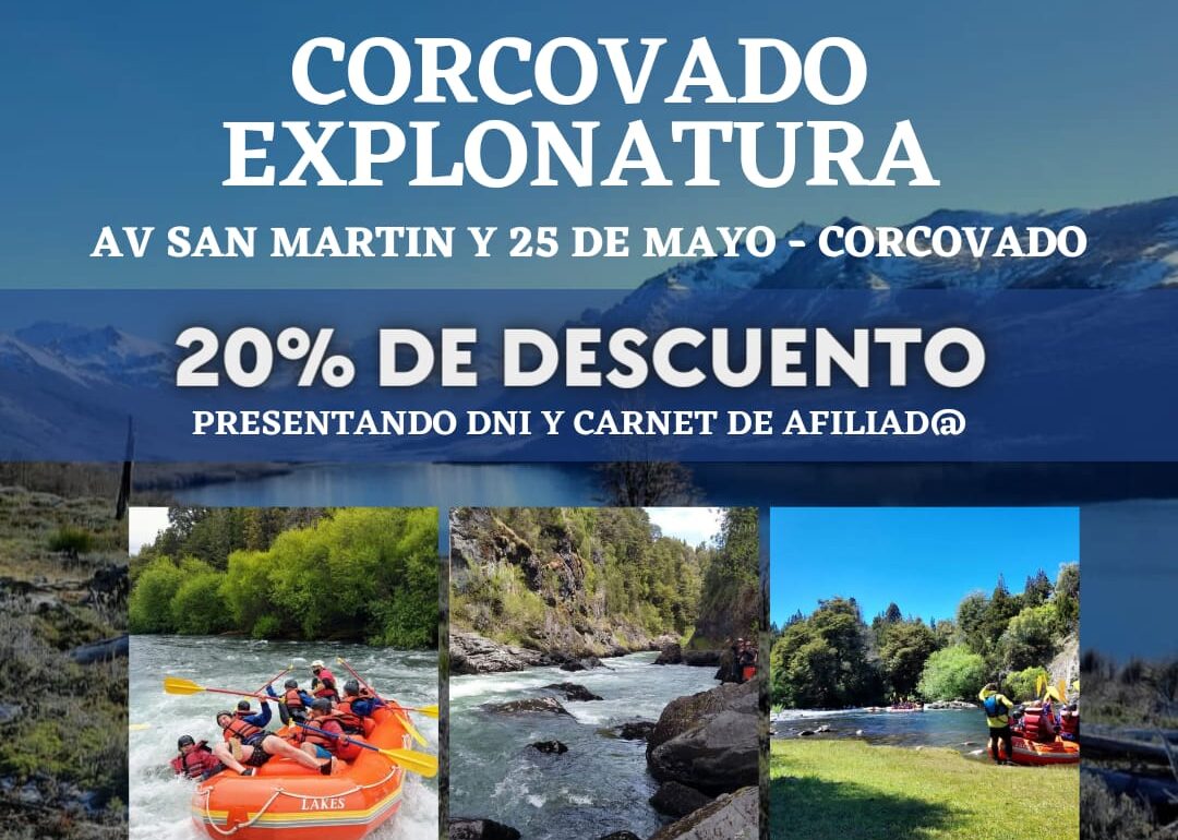 Presentando tu DNI y carnet de afiliado a La Bancaria, accedés a un 20% de descuento en todas las actividades y servicios que ofrece Corcovado Explonatura. Una oportunidad imperdible para vivir Corcovado con beneficios exclusivos.