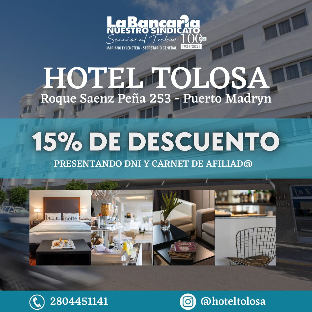 Disfrutá Puerto Madryn con todo el confort del Hotel Tolosa y un 15% de descuento para afiliados a La Bancaria